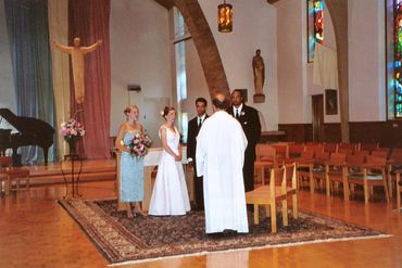 The wedding ceremony was celebrated at St. Joan of Arc Catholic Church in Minneapolis. Many thanks to Fr. George Wertin for his kind, gracious, and enlightened shepherding. If you know St. Joan of Arc Parish, you know that praise is only the tip of the iceberg. Also many thanks to Echo Thoren for wedding coordination,